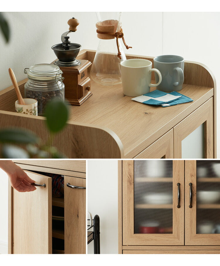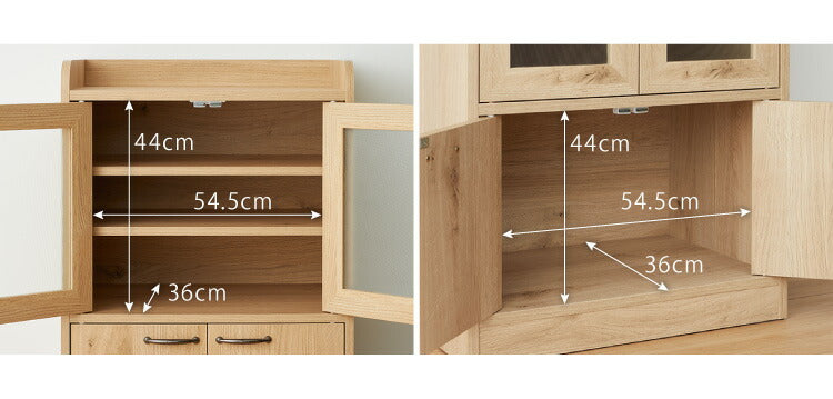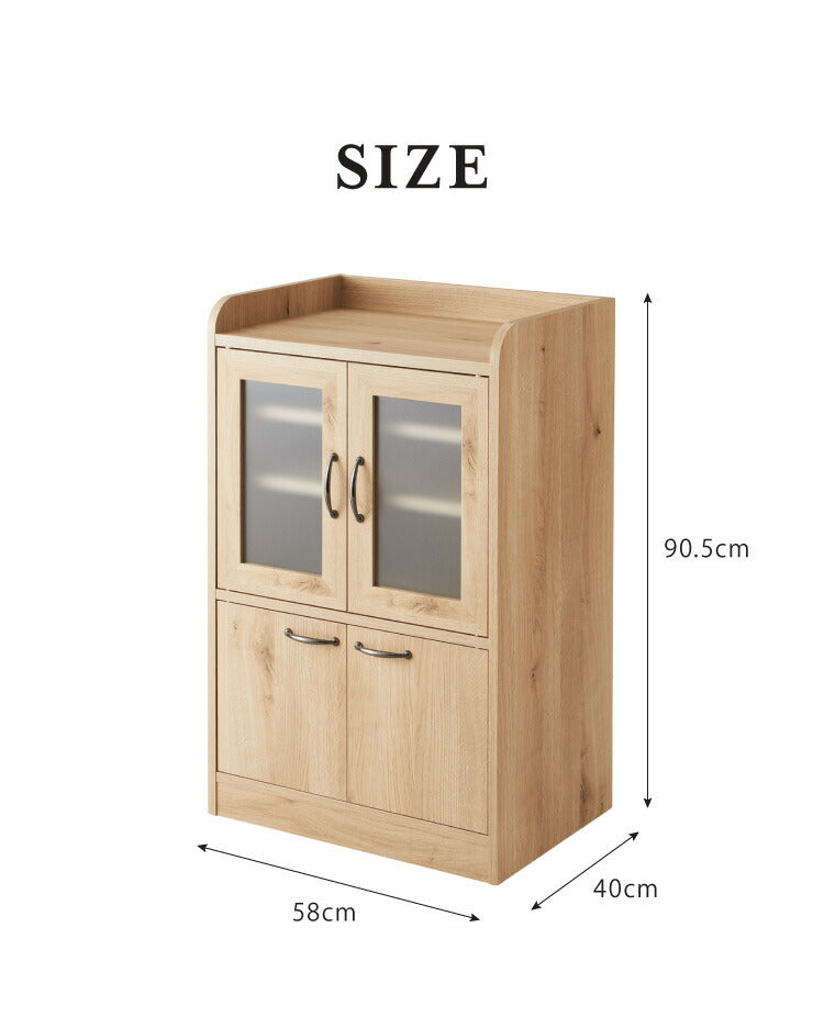日本製 木目調 食器棚 スリム キッチン収納 【完成品】食器棚 ロータイプ 幅60 稼働棚 ミスト扉 奥行40cm 高さ90.5cm 一人暮らし キャビネット コンパクト ガラス扉 キッチンボード カップボード(代引不可)