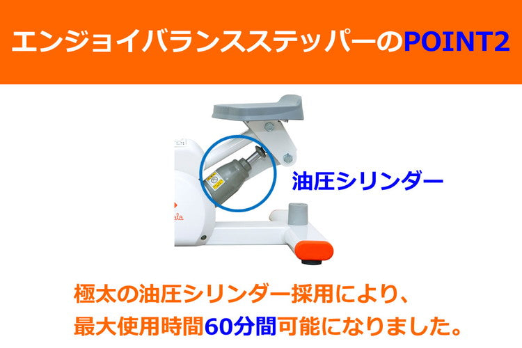 極太油圧シリンダー採用で連続使用時間60分可能!ステップ部分が常に平行なため、バランスがとりやすい。