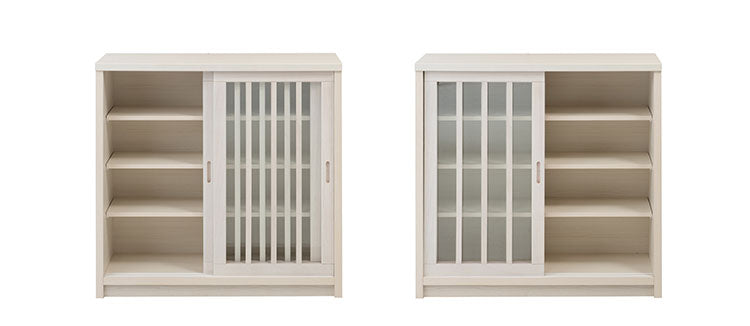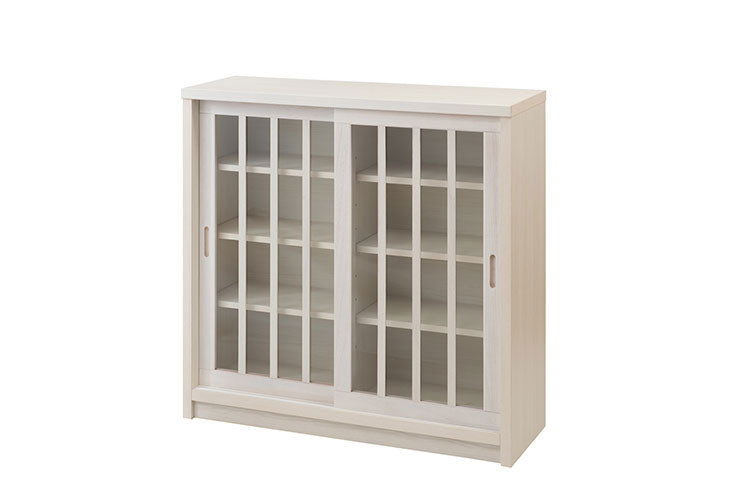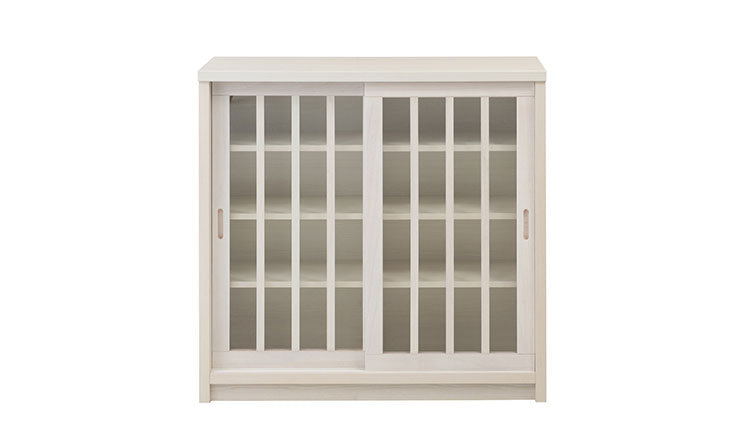 Tatis 幅90.5cm 奥行30cm 高さ86.5cm 天然木桐材の格子ガラス引戸キャビネット カウンター下収納 キッチン収納 ホワイト 日本製 国産 完成品 木製 桐 収納家具 チェスト タンス リビング収納(代引不可)