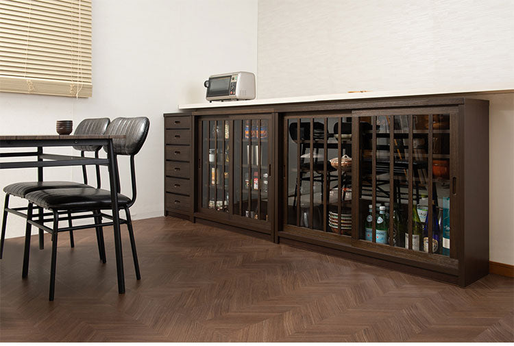 ■商品の仕様/前板枠:桐材(ウレタン樹脂塗装)、扉枠内:ガラス、天板:強化プリント紙化粧繊維板、その他:プリント紙化粧繊維板