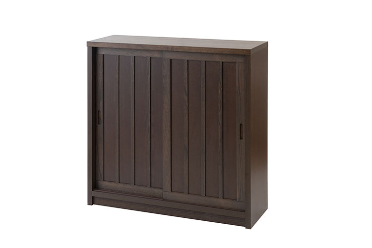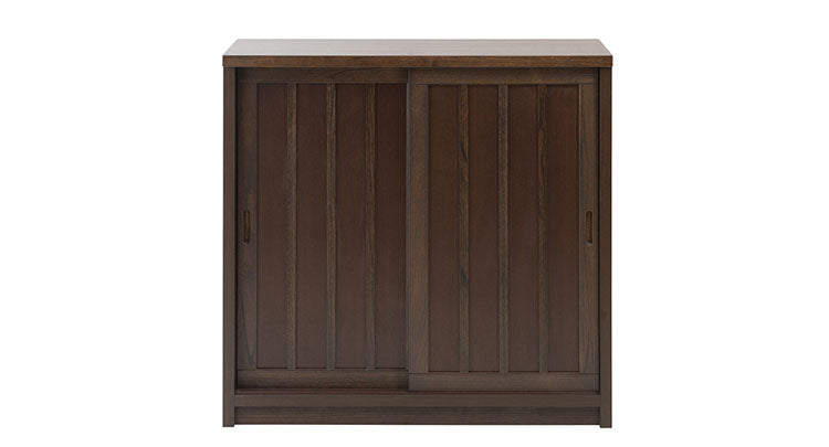Tatis 幅90.5cm 奥行30cm 高さ86.5cm 天然木桐材の格子板引戸キャビネット カウンター下収納 キッチン収納 ブラウン 日本製 国産 完成品 木製 桐 収納家具 チェスト タンス リビング収納 インテリア(代引不可)