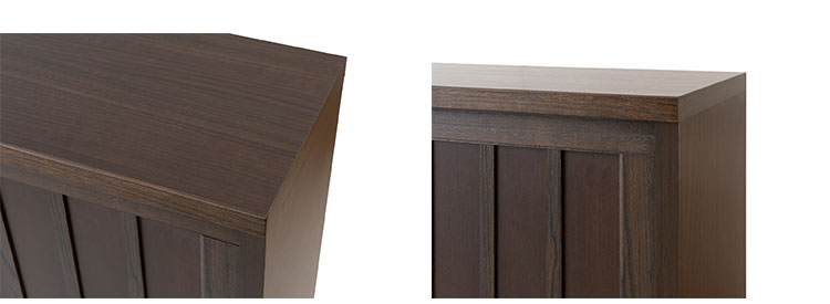 ■商品の仕様/前板枠:桐材(ウレタン樹脂塗装)、扉枠内:天然木化粧繊維板(ウレタン樹脂塗装)、天板:強化プリント紙化粧繊維板、その他:プリント紙化粧繊維板