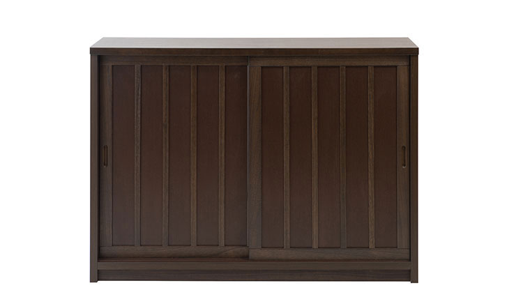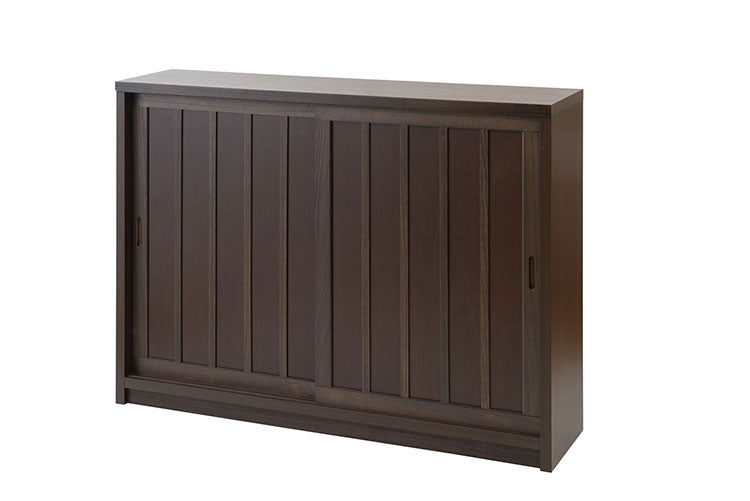 Tatis 幅120.5cm 奥行30cm 高さ86.5cm 天然木桐材の格子引戸キャビネット カウンター下収納 キッチン収納 ブラウン 日本製 国産 完成品 木製 桐 収納家具 チェスト タンス リビング収納 インテリア(代引不可)
