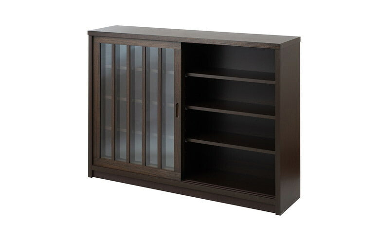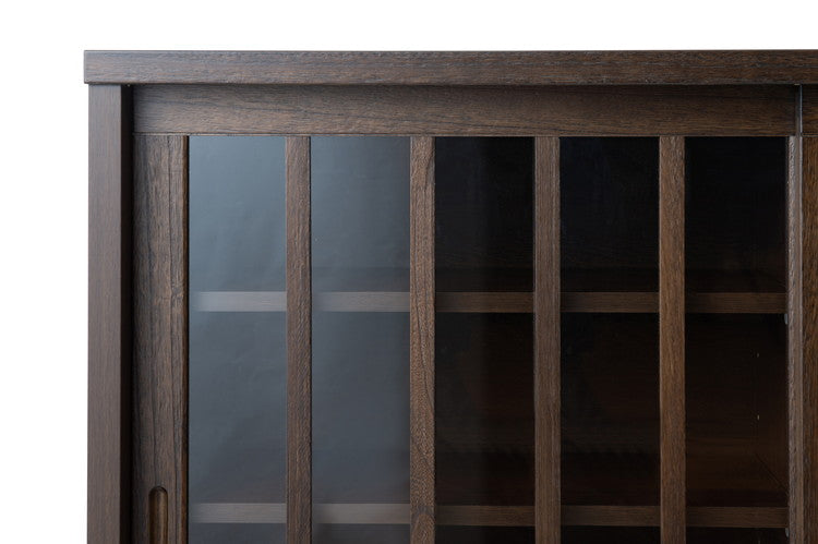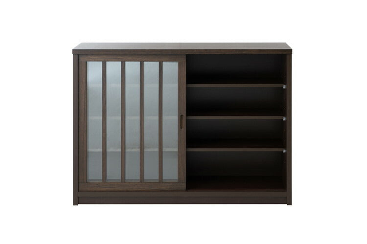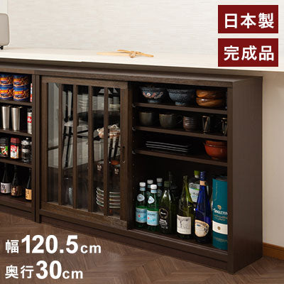 Tatis 幅120.5cm 奥行30cm 高さ86.5cm 天然木桐材の格子ガラス引戸キャビネット カウンター下収納 キッチン収納 ブラウン 日本製 国産 完成品 木製 桐 収納家具 チェスト タンス リビング収納(代引不可)