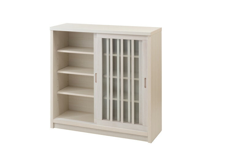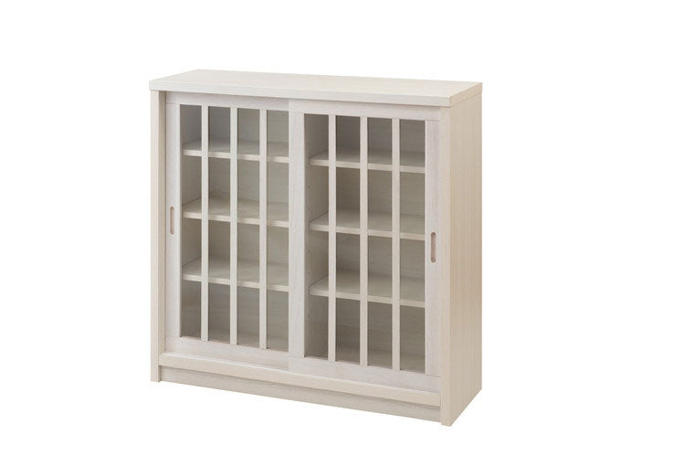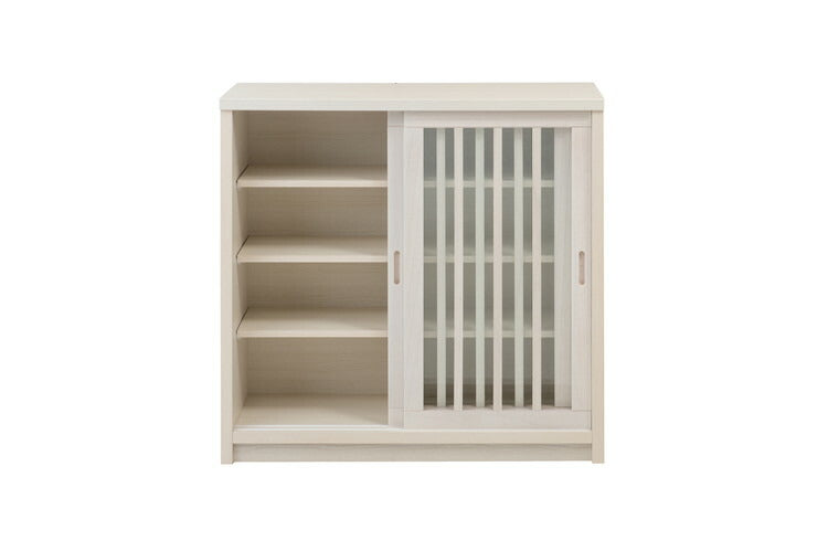 Shirayuki 白雪シリーズ 和モダン引戸キャビネット 幅90.5 奥行30 高さ86.5 キャビネット ホワイト 日本製 国産 完成品 収納 お洒落 一人暮らし 棚 サイドボード DVD 本 収納家具 チェスト リビング(代引不可)