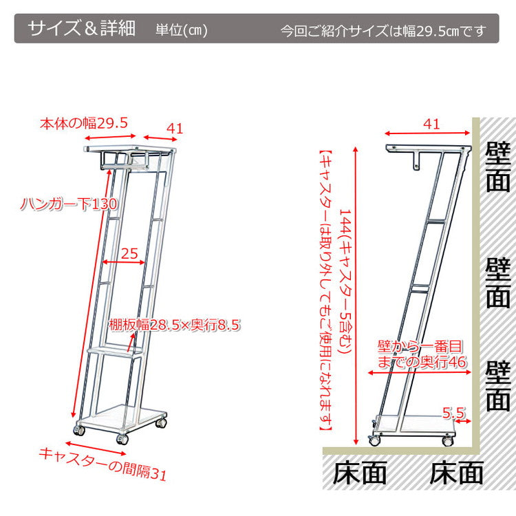 ハンガーラック ラック ホワイト 白 幅30 キャスター付き スチールラック リビング 寝室 衣類収納 ハンガー 洋服掛け 洋服ハンガー 洋服収納 ダイニング ベッドルーム(代引不可)