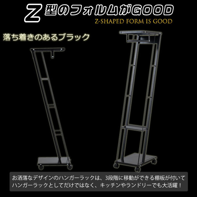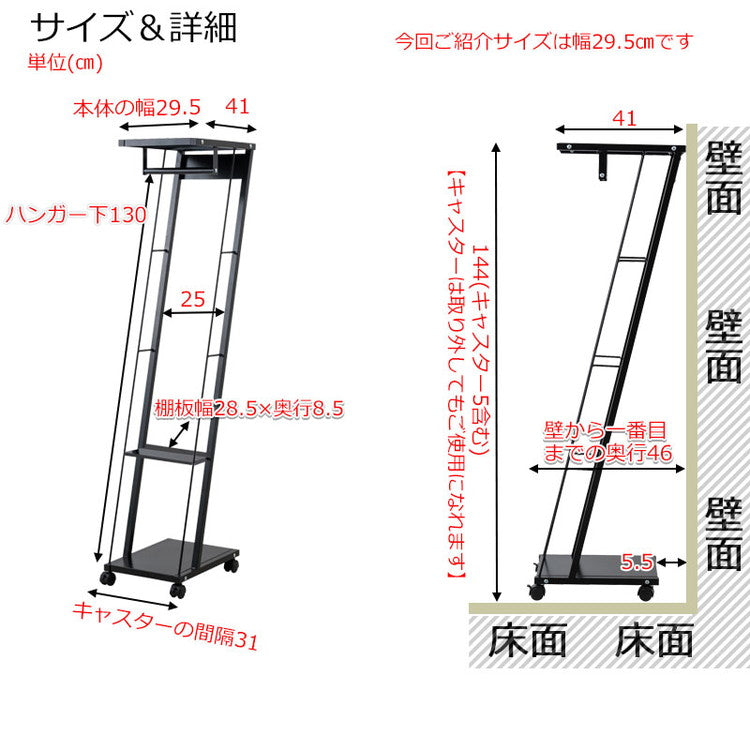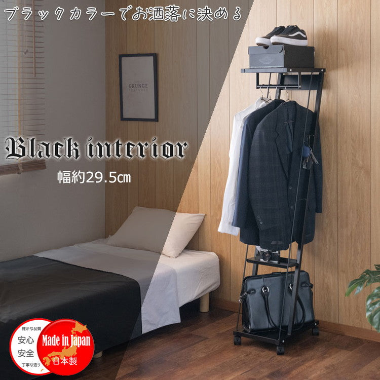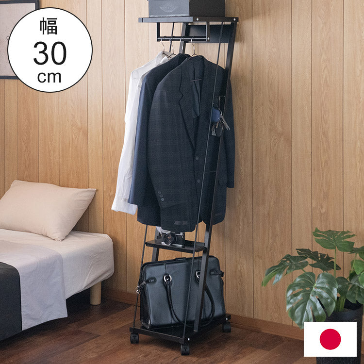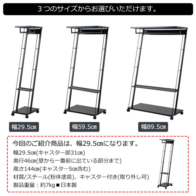 ハンガーラック ラック ブラック 黒 幅30 キャスター付き スチールラック リビング 寝室 衣類収納 ハンガー 洋服掛け 洋服ハンガー 洋服収納 ダイニング ベッドルーム(代引不可)
