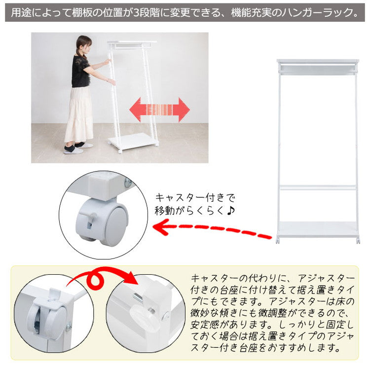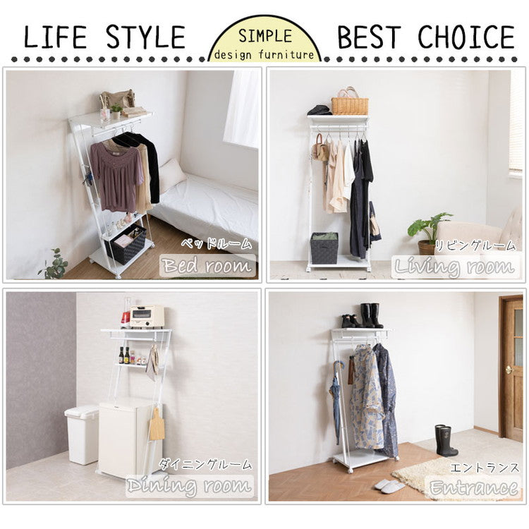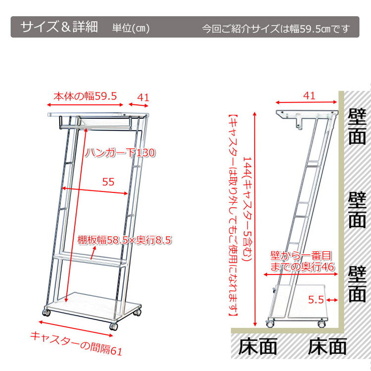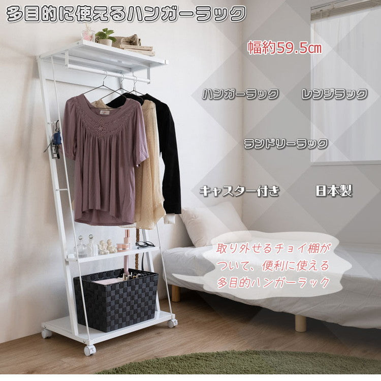ハンガーラック ラック ホワイト 白 幅60 キャスター付き スチールラック リビング 寝室 衣類収納 ハンガー 洋服掛け 洋服ハンガー 洋服収納 ダイニング ベッドルーム(代引不可)