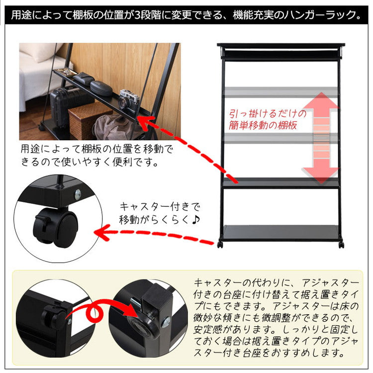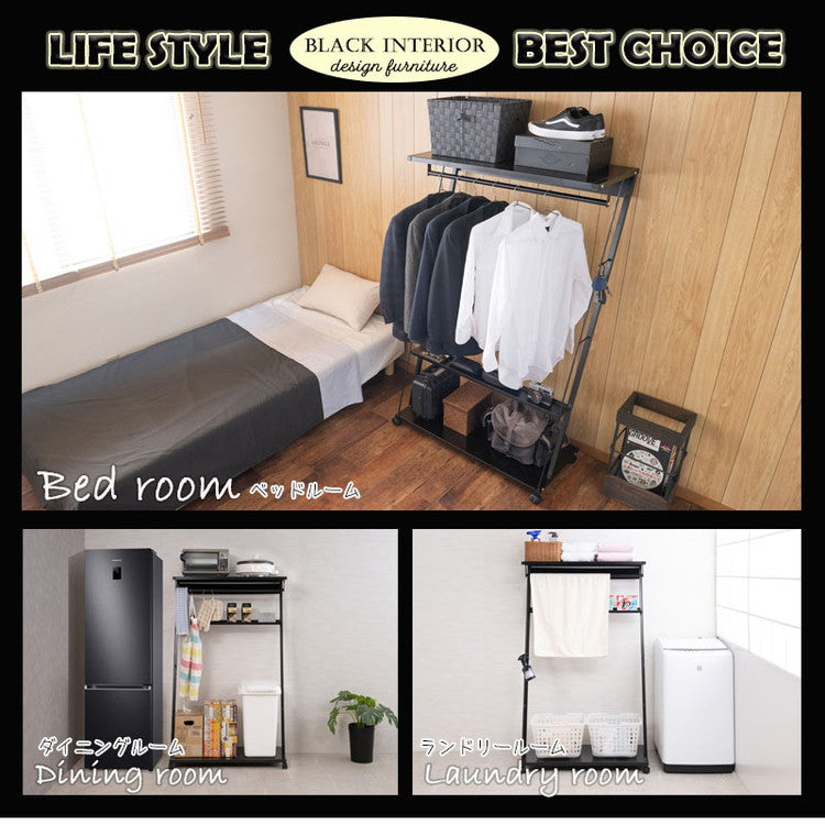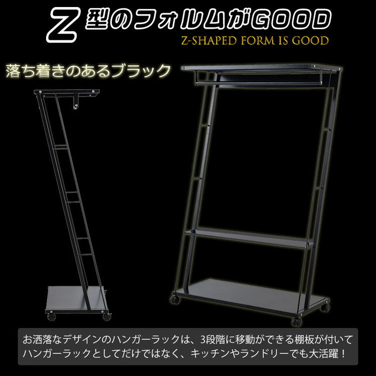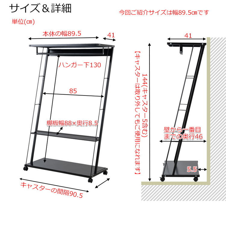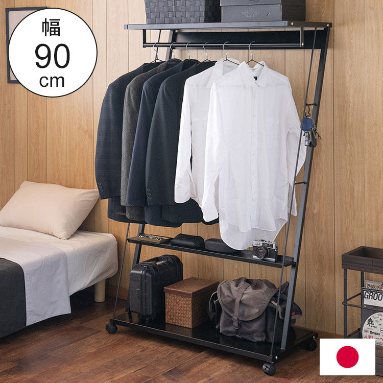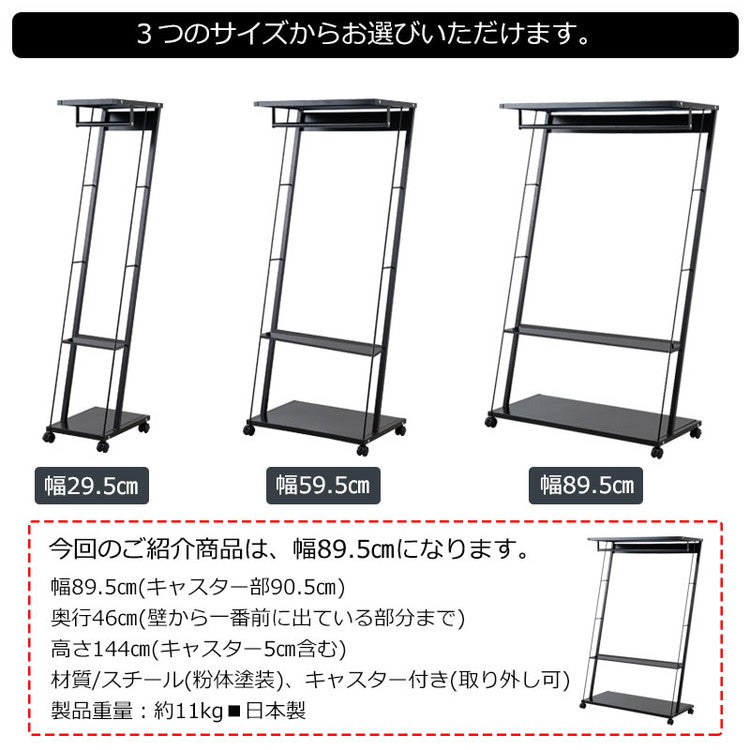 ハンガーラック ラック ブラック 黒 幅90 キャスター付き スチールラック リビング 寝室 衣類収納 ハンガー 洋服掛け 洋服ハンガー 洋服収納 ダイニング ベッドルーム(代引不可)