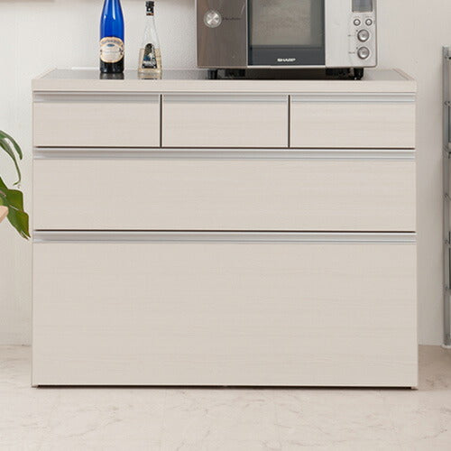 日本製 大川家具 ステンレス キッチンカウンター 幅110 上引き出し3杯 木目調 ホワイト カウンタ― レンジ台 レンジラック 大容量 白 北欧(代引不可)