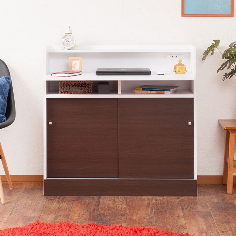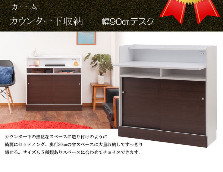 Calm カウンタ―下 デスク 収納 幅90 大容量 ダークブラウン 茶 木目調 カウンター おしゃれ 天板 在宅勤務 テレワーク PCデスク 北欧(代引不可)