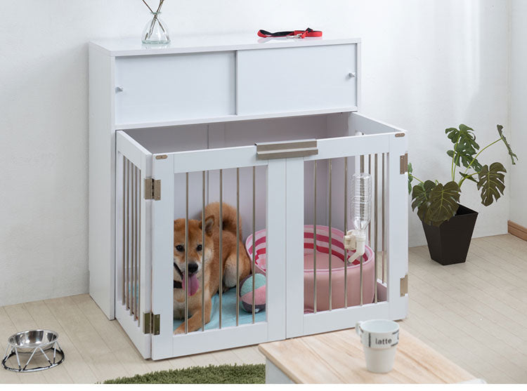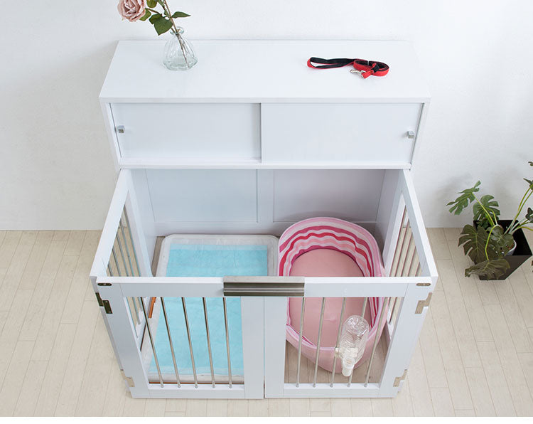 face 折りたたみ式ペットゲージ ホワイト 引き戸収納庫付き 犬 猫 ゲージ ペット ケージ ペットケージ 小屋 サークル ゲージ サークルケージ キャットケージ 室内 犬小屋(代引不可)