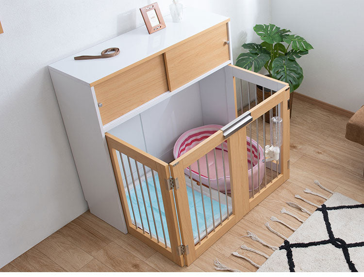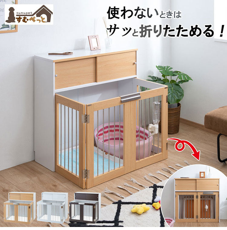 Neat 折りたたみ式ペットゲージ ナチュラル 引き戸収納庫付き 犬 猫 ゲージ ペット ケージ ペットケージ 小屋 サークル ゲージ サークルケージ キャットケージ 室内 犬小屋(代引不可)