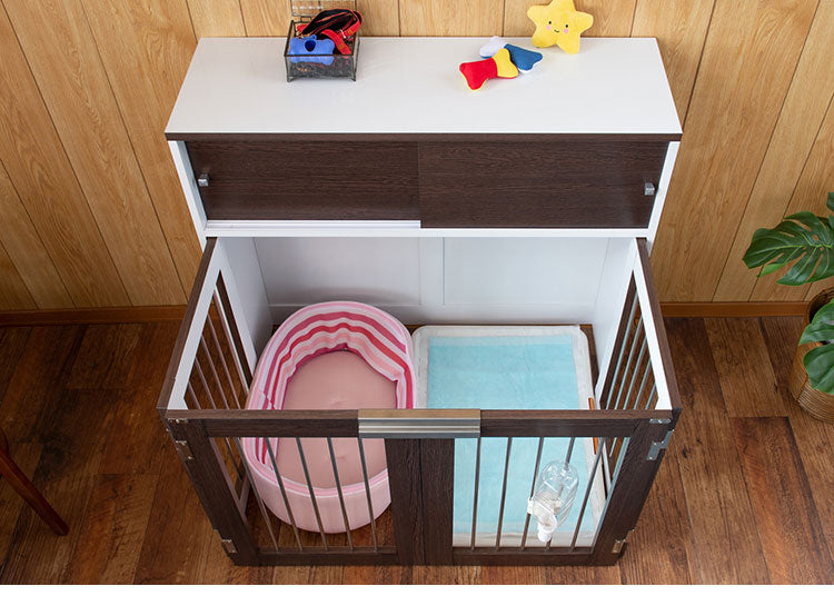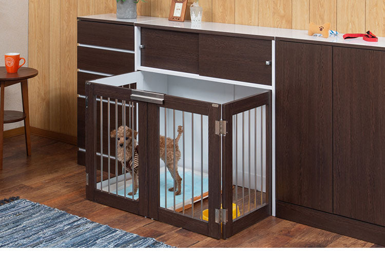Calm 折りたたみ式ペットゲージ ダークブラウン 引き戸収納庫付き 犬 猫 ゲージ ペット ケージ ペットケージ 小屋 サークル ゲージ サークルケージ キャットケージ 室内 犬小屋(代引不可)