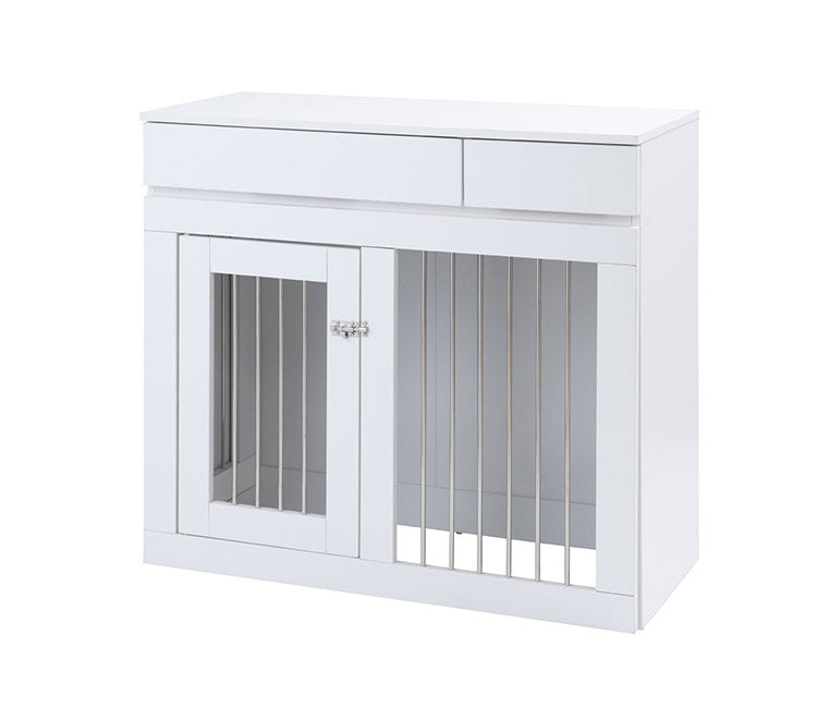 WHITE LIV 幅90 奥行40 高さ80 収納付きスライド収納型ケージ ホワイト フレンチシャビー ペットケージ ペットサークル 省スペース 小型犬 中型犬 室内サークル スライド 背面化粧 犬 ペット用品(代引不可)
