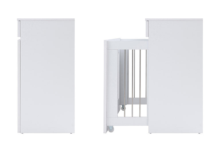 ケージ部がスライド式になっているので、すごく簡単に設置でき、開閉も簡単!閉じている時は本体の奥行は約40cmで邪魔にならず、他の家具と並べてもスッキリとします。