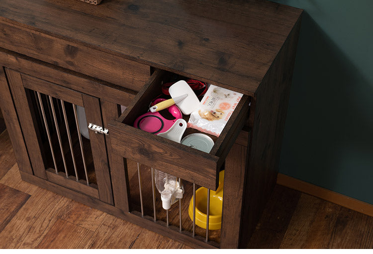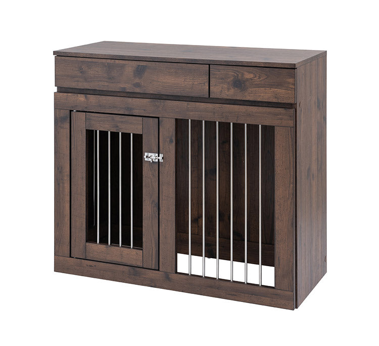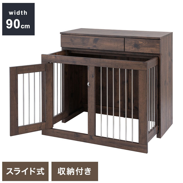 ARIZONA 幅90 奥行40 高さ80 収納付きスライド収納型ケージ ブラウン 西海岸ヴィンテージ ペットケージ ペットサークル 省スペース 小型犬 中型犬 室内サークル スライド 背面化粧 犬 ペット用品(代引不可)