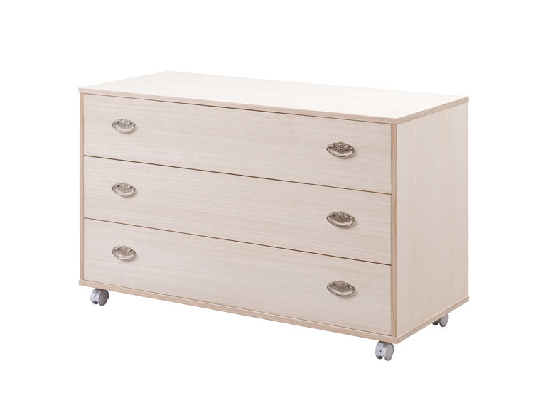 シルバー取っ手が華やかな桐クローゼットチェスト 幅99.5 奥行44 高さ61cm 3段タイプ キャスター付き 生地仕上げ 日本製 完成品(代引不可)