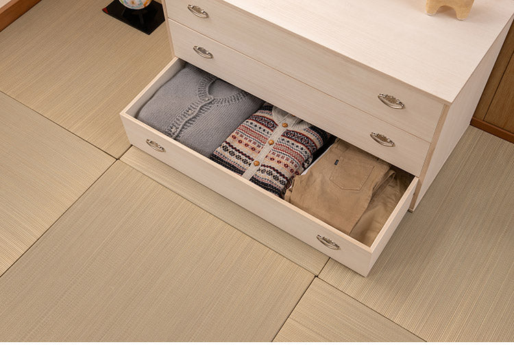 クローゼットや押し入れから出し入れがし易い移動に便利なキャスター付き。動かさない時はストッパーが2個付いていますのでしっかり固定できます。お掃除などの場合でもキャスター付きだと簡単に移動ができて便利です。着物から大切な衣類まで収納するならやっぱり桐。調湿機能に優れた桐材は、日本のように四季がある国では大変重宝されています。日本の伝統的な着物と桐箪笥は、まさに相性が抜群と言える組み合わせです。着物だけではなく、大事な衣類なども合わせて収納ができます。着物をたとう紙に入れたまま保管できるのが桐チェスト。もちろん、セーターや大事な衣類の保管にも。クローゼットや押し入れなどのデッドスペースに収納をプラスして。