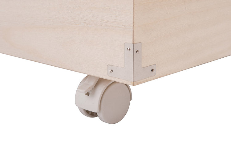桐材は内部を一定の湿度に保とうとする働きがあるので、ひな人形や大事な着物などを湿気から守る桐箱にしまうのがベスト。竹炭シートを施しているので、消臭効果もプラス!もちろん押し入れやクローゼットに入るサイズで仕上げ、長期保管に最適です。冬物のかさばる大きな布団や毛布、衣類など保管したいものは全てここに。シルバー色の取っ手、隅にシルバー色の飾り金具を手打ちした豪華仕様。キャスター付きなので移動や出し入れが楽々!桃の節句のお雛さんや端午の節句の兜を収納に。