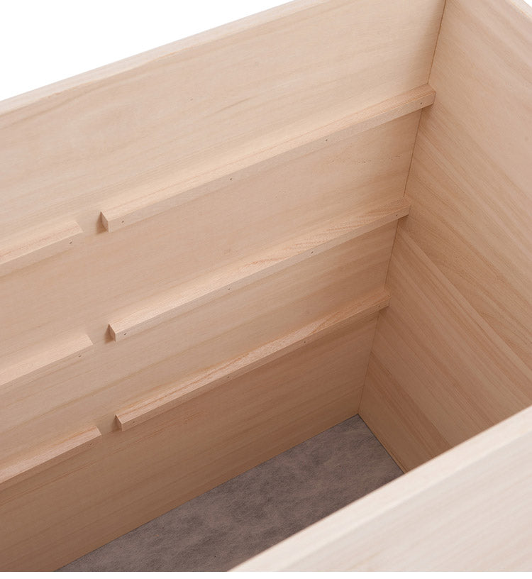 九番親王サイズ、京七番親王サイズが、綺麗に収まる大容量の収納力!たっぷり入る深さ72.5cmの大容量で布団や衣類などの保管にも。シルバー色の取っ手、隅にシルバー色の飾り金具を手打ちした豪華仕様に加え、キャスター付で移動も楽々、近くに持ってきて雛人形を飾りつけできます。量が入るから色んな物が収納でき、取外し可能なスノコでバッグ類を上下に分けたり、衣類・布団等かさばる物の収納に。