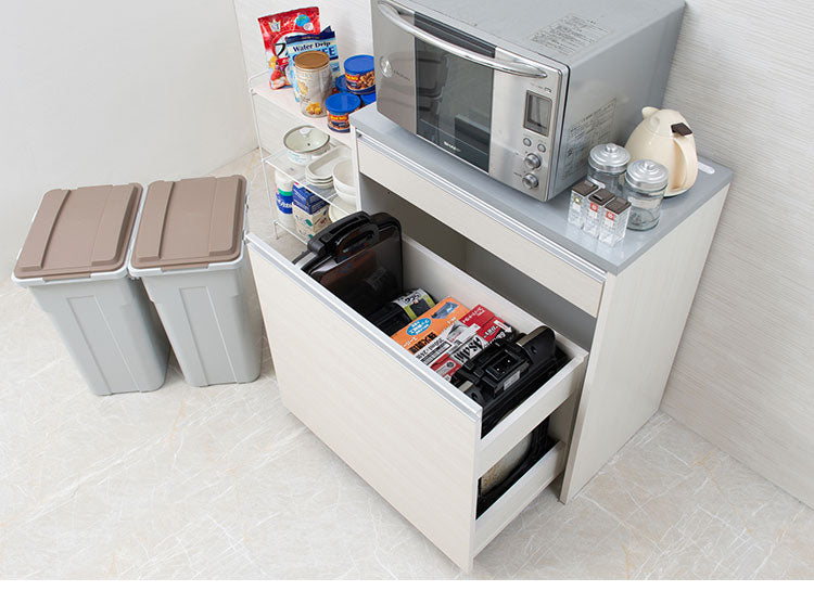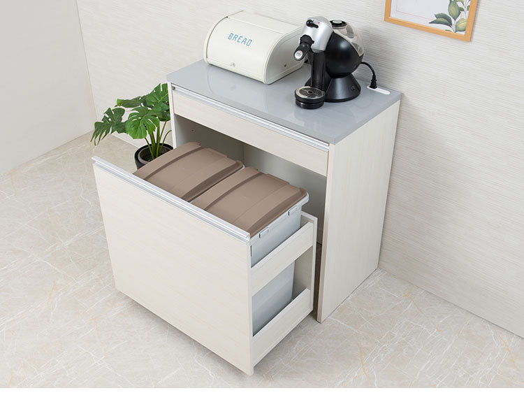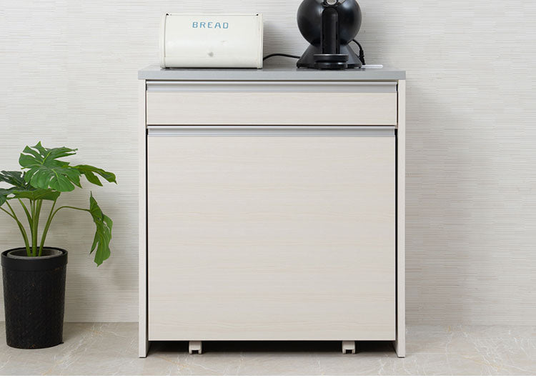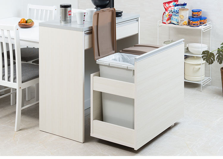 ダストボックス キッチンカウンター 幅80.5cm ホワイトウォッシュ 日本製 完成品 2分別 45リットル 引き出し付き ゴミ箱 ごみ箱 レンジ台 ダストカウンター キッチン収納 隠す収納(代引不可)