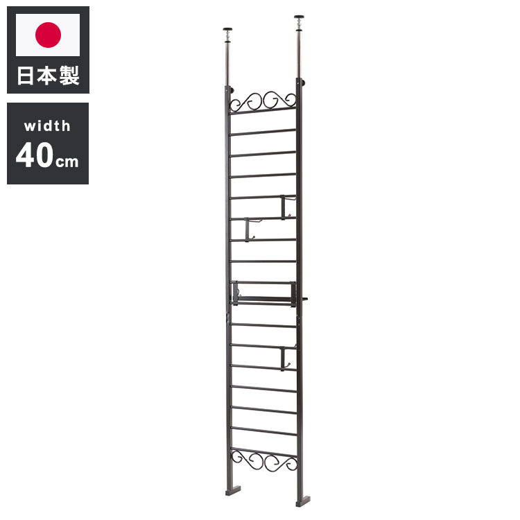 Aria シリーズ デザインラダーラック 突っ張りパーテーション 幅40 ブラック色 日本製 店舗 什器 メルヘン ディスプレイ 衣類収納 ワードローブ ラダー パーテーション パーティション つっぱり(代引不可)