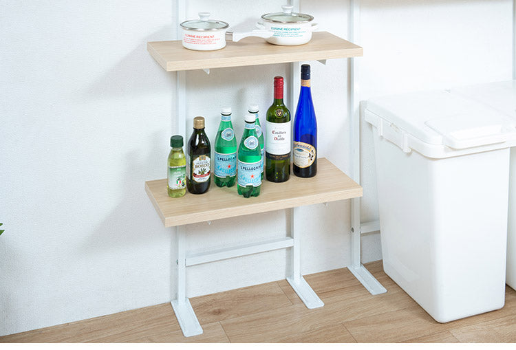 突っ張り壁面収納 無段階調整2枚棚オープンラック 幅59.5cm マリンナチュラル 壁面ラック 棚 つっぱり 薄型 収納 ディスプレイラック 店舗 新生活 カフェ サロン 一人暮らし diy 北欧(代引不可)
