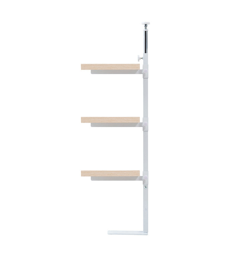 無段階に可変する棚板で、様々な物を、様々な用途で使う事ができる、万能型の突っ張り式のラックでお洒落なスペースに。棚板はつまみを緩めて移動が簡単にでき、無段階の高さ調節ができるので置くものに合わせてレイアウトができます。本体を2台並べて、別売り棚板を挟めば、用途がさらに広がります。置くものを変えても棚板を移動して模様替えが簡単にできるのが大変便利です。