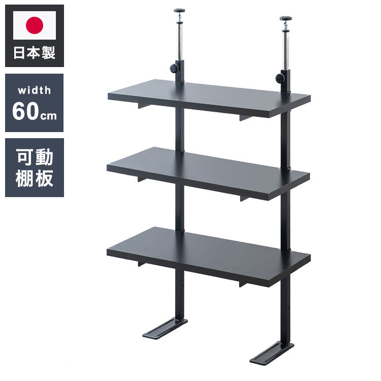 bravo ブラボーシリーズ カウンター下ラック 無段階調整3枚棚オープンラック 本体 幅59.5cm ブラック キッチン キッチン収納 ラック 棚 突っ張り つっぱり棚 つっぱりラック 収納棚(代引不可)