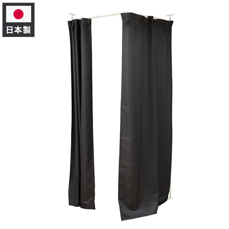 wally 突っ張り間仕切り伸縮カーテン コーナーL型 ブラック 目隠しカーテン 突っ張りパーティション つっぱりパーテーション 間仕切りカーテン パーテーション オフィス(代引不可)
