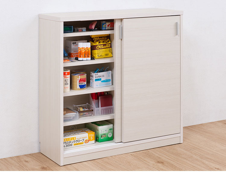 FINEシリーズ カウンター下収納 幅90cm 引き戸タイプ ホワイトウォッシュ 日本製 完成品 キッチン カウンター下 収納 本棚 食器棚 ミニ食器棚 カウンター収納 薄型収納 ラック(代引不可)