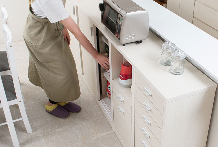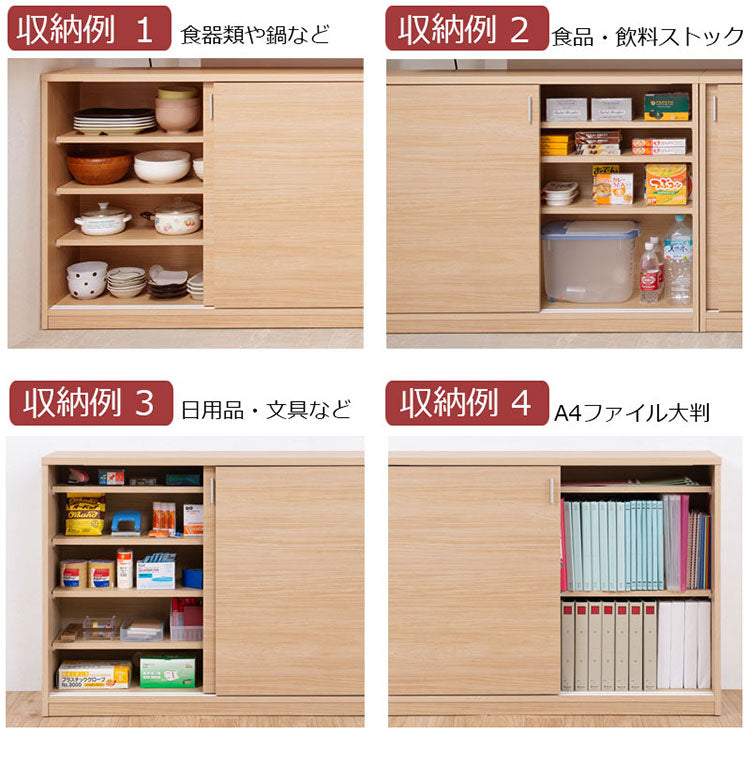 アイテムも豊富でカウンター下のデッドスペースを有効活用でき造り付けのような仕上がりです。開き扉の商品では、開閉のためにスペースが扉の幅分必要になってきますが、引き戸式ならわずかなスペースでOK。可動棚板の後部に1cmのすき間があり、上下の配線がしやすくなっています。配線に便利なコード穴付きで、ルーターなども収納できます。滑車付きの扉はスムーズな開閉でストレスなくご使用になれます。日本製&組立不要のすぐに使える完成品でお届け。