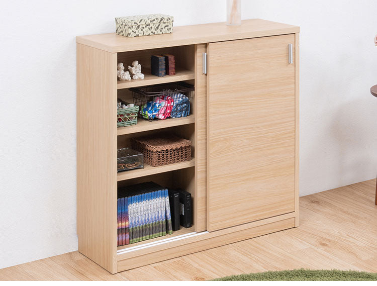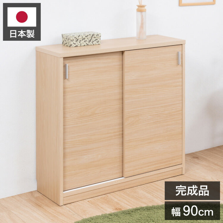 FINEシリーズ カウンター下収納 幅90cm 引き戸タイプ マリンナチュラル 日本製 完成品 キッチン カウンター下 収納 本棚 食器棚 ミニ食器棚 カウンター収納 薄型収納 ラック(代引不可)