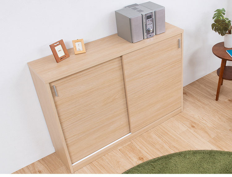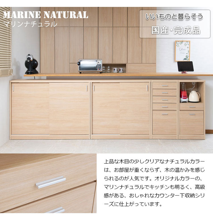 FINEシリーズ カウンター下収納 幅120cm 引き戸タイプ マリンナチュラル 日本製 完成品 キッチン カウンター下 収納 本棚 食器棚 ミニ食器棚 カウンター収納 薄型収納 ラック(代引不可)