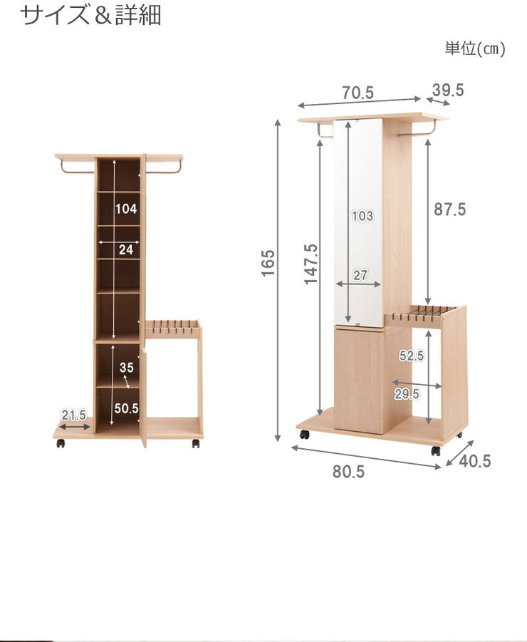 ■商品サイズ/本体:(約)幅80.5×奥行40.5×高さ165cm