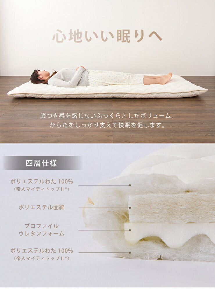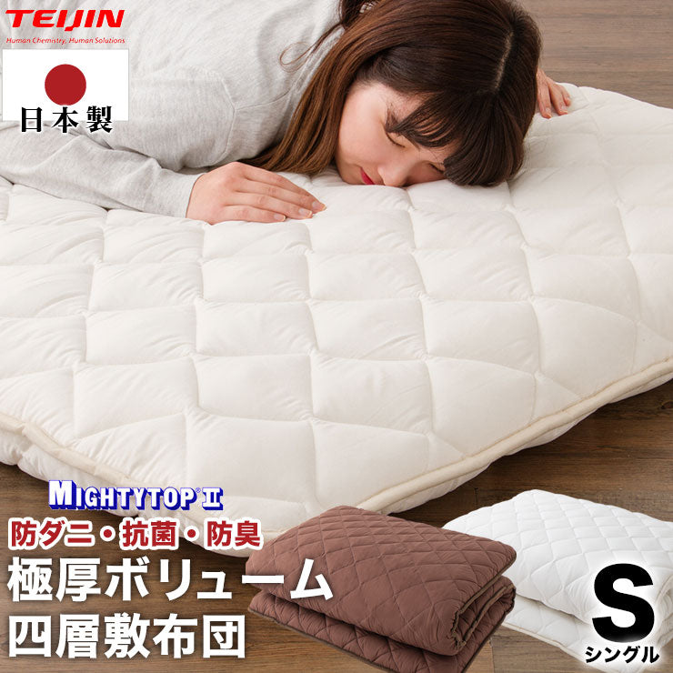 敷布団 シングル 極厚四層 日本製 ウレタン固綿入り 防ダニ 抗菌防臭 帝人マイティトップII使用 吸湿保温 軽量 敷き布団 ふとん 極厚 4層 帝人 マットレス テイジン teijin マイティトップ 国産 新生活