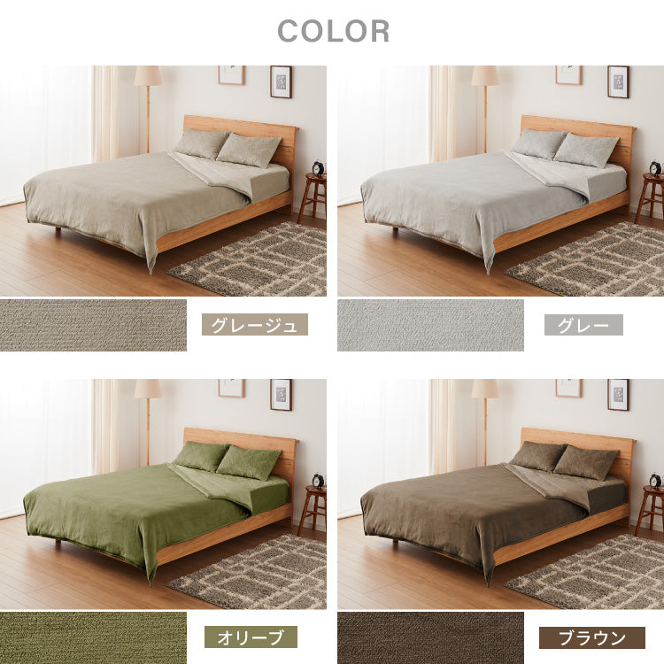 毛布1枚、BOXシーツ1枚、枕カバー1枚(ダブルは2枚)