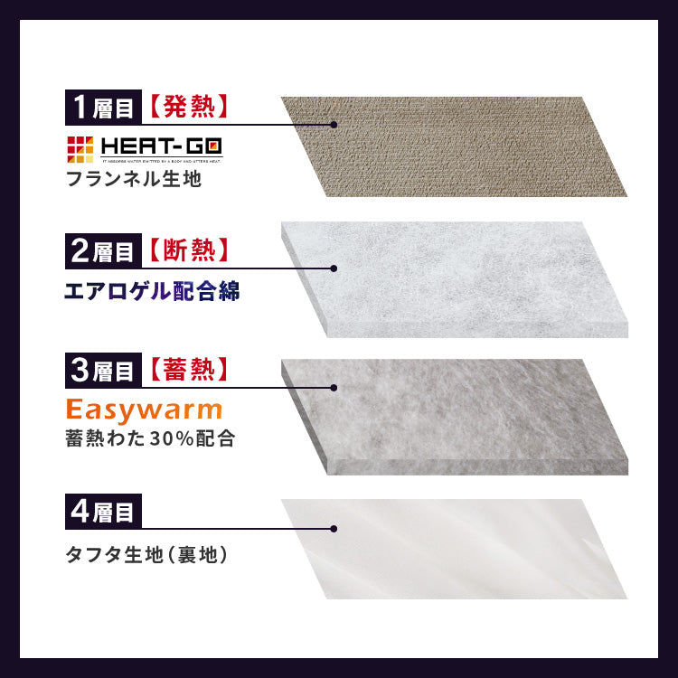 4層目(裏生地):フランネル生地/HEAT-GO素材(ポリエステル100%)