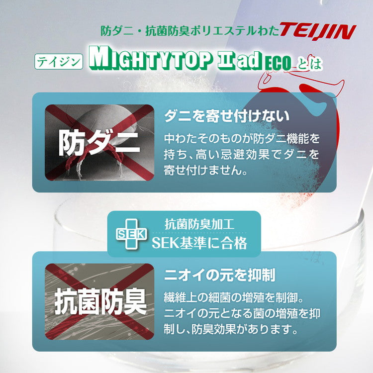 中綿そのものが防ダニ効果を持ち高い忌避率効果でダニを寄せ付けません。