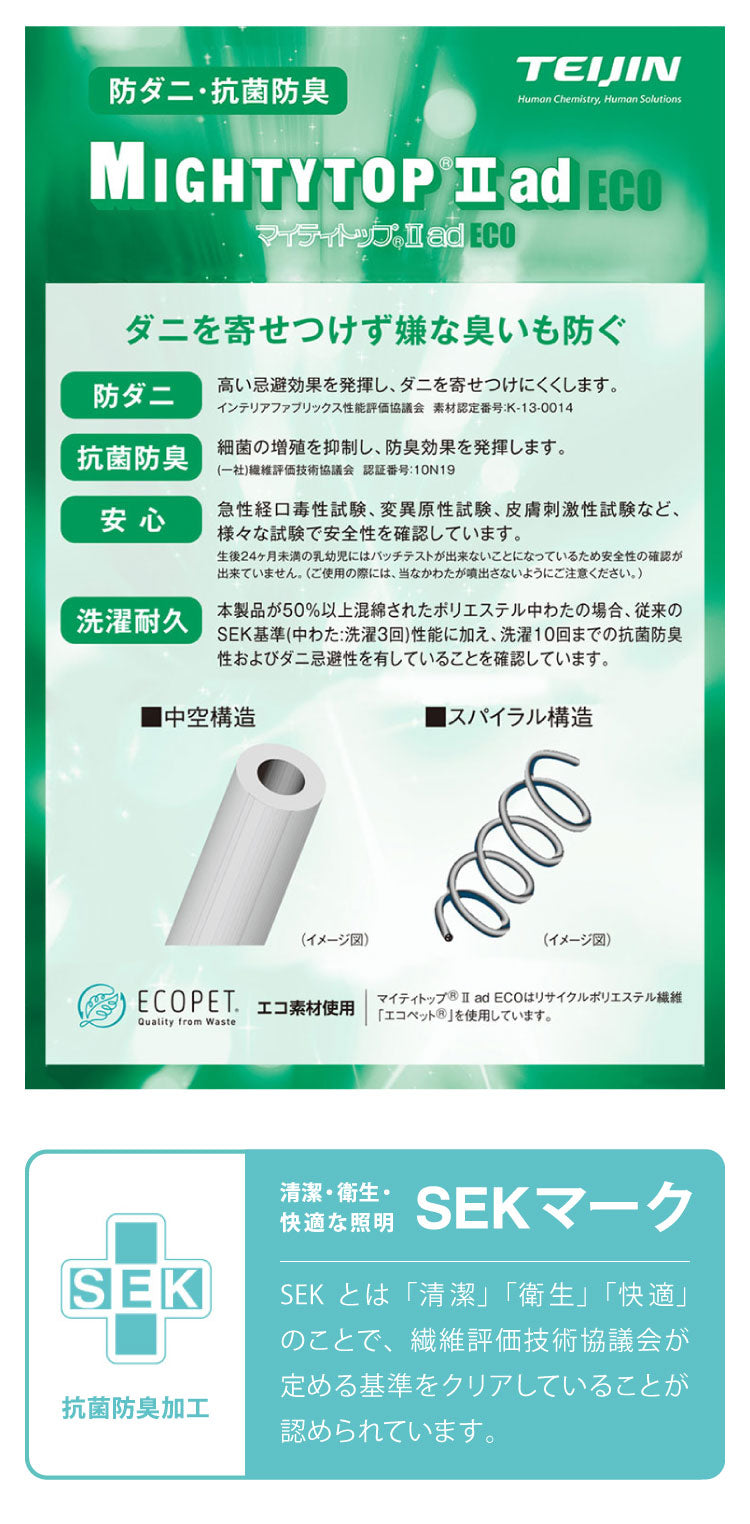 [掛布団]1.5kg(帝人マイティートップ2/50%、中空糸レギュラーポリエステル綿/50%)