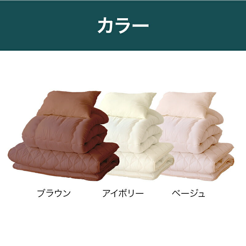 中材重量/掛ふとん:1.6kg、三層式敷ふとん:4.0kg、枕:0.5kg