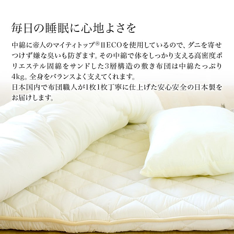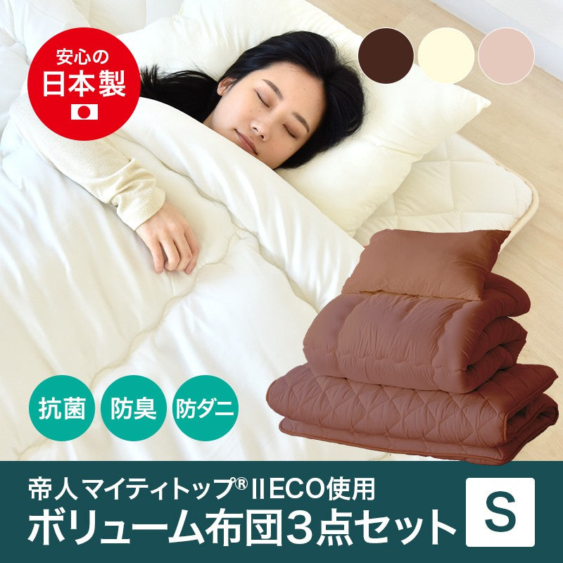 増量 日本製 布団セット シングル 3点 掛け布団 敷布団 ボリューム 枕 マイティ マイティトップわた仕様日本製布団3点セット