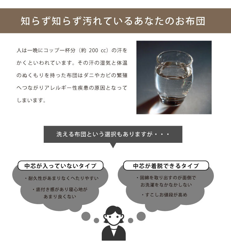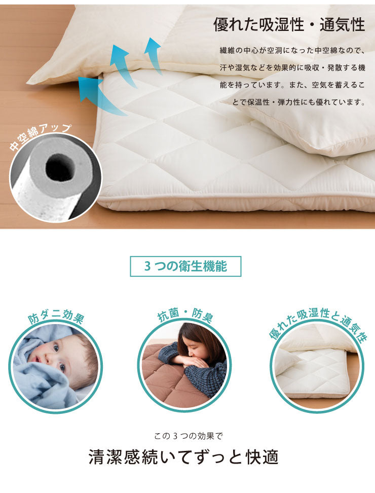 ・清潔な寝環境を創り出すこだわりの三層敷布団