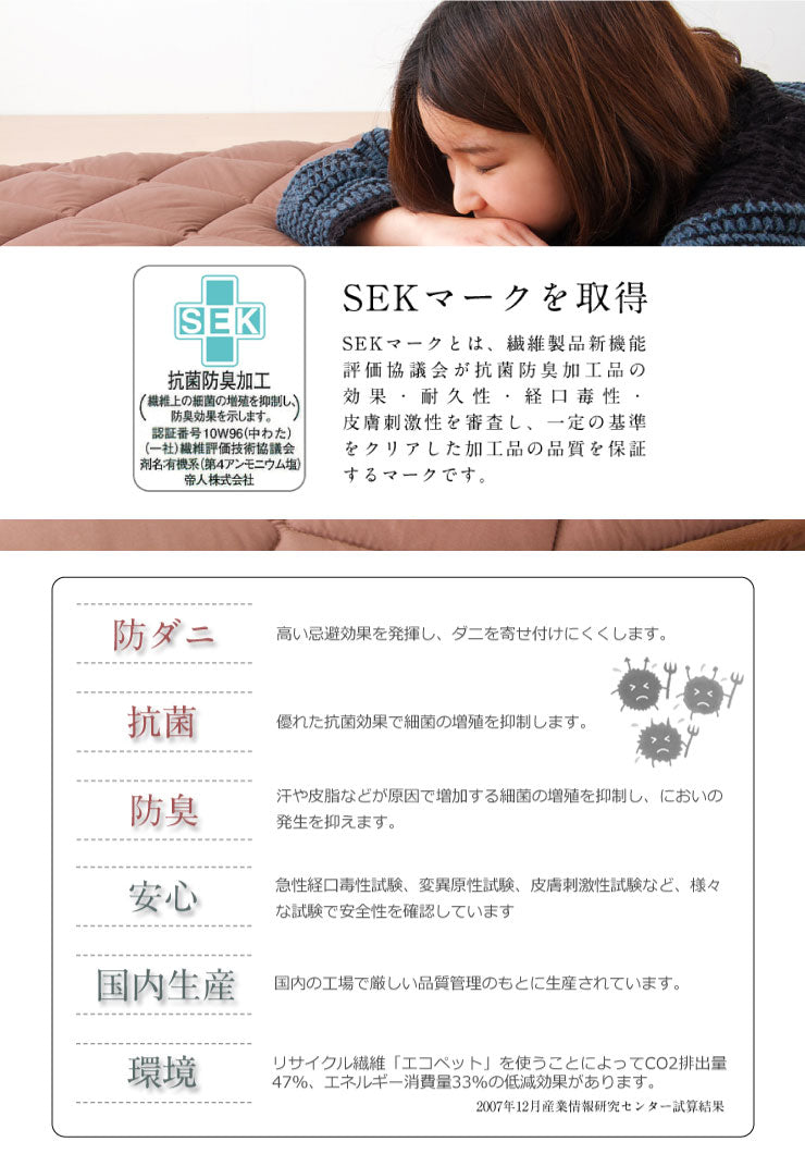 ・テイジンのマイティトップを使用、抗菌防臭防ダニでオールシーズン快適