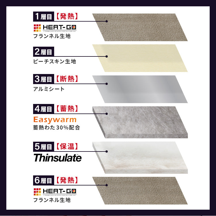 6層目(裏生地):フランネル生地/HEAT-GO素材(ポリエステル100%)