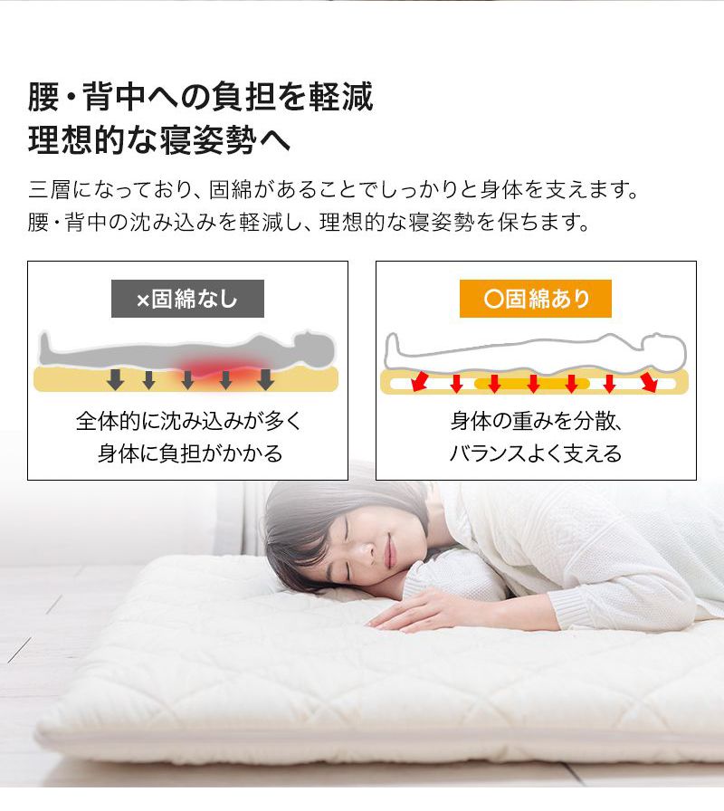 いつでも清潔に使用できる、着脱式3層敷布団です。