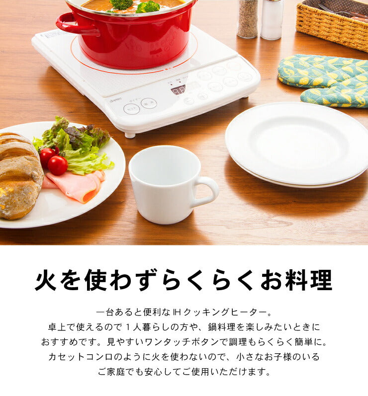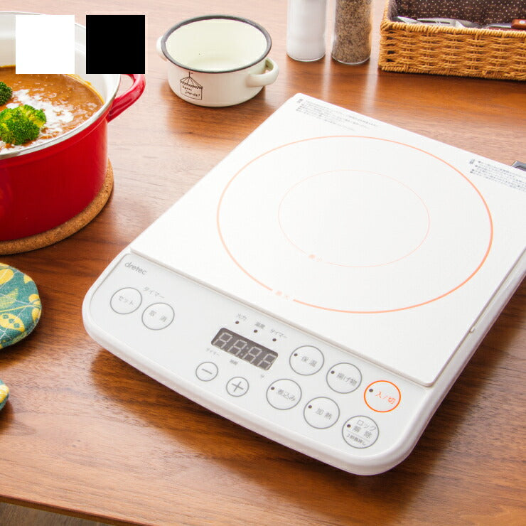 ドリテック dretec IH調理器 1200W DI-113 2色 ブラック ホワイト 1口 電磁調理器 IH調理器 IHコンロ 卓上コンロ IHクッキングヒーター 工事不要 コンパクト 小型 1人暮らし 新生活