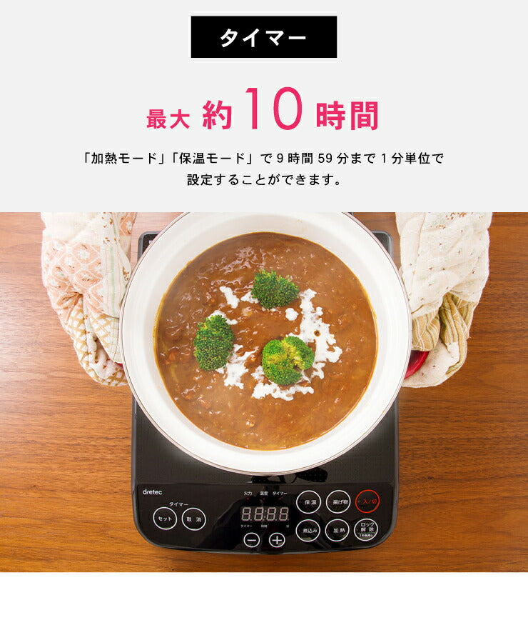 タイマー機能:1分~9時間59分(加熱調理・保温時のみ)