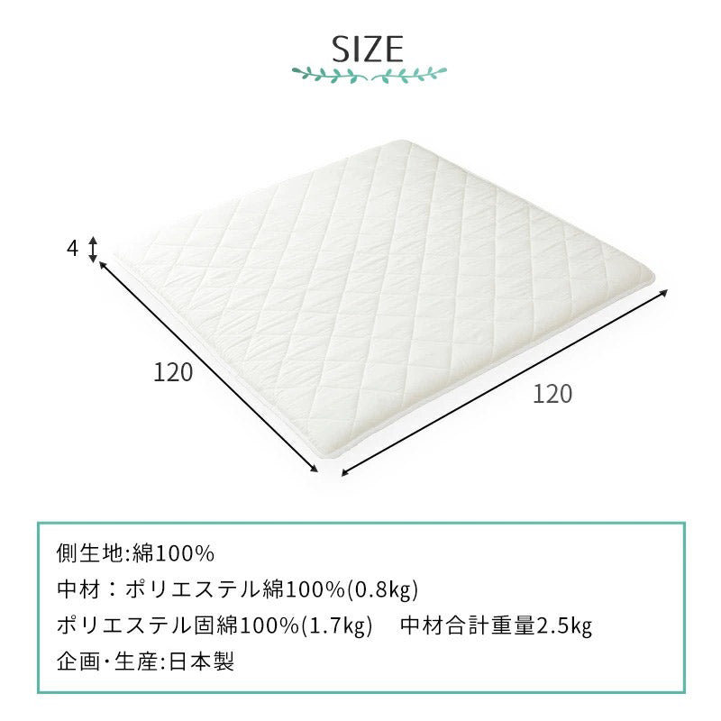 ベビーマット 寝返りマットレス 120×120cm 正方形 固綿入りのしっかり敷き布団 お昼寝 ベビーマットレス ベビー敷布団 敷き布団 敷きふとん 赤ちゃん 幼稚園 保育園 無地 固め 硬め 新生児(代引不可)